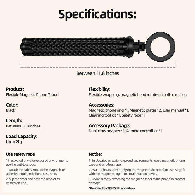 - Twee-in-één montage: magnetische snelbevestiging voor telefoons plus 1/4" schroefdraad voor camera's en lampen