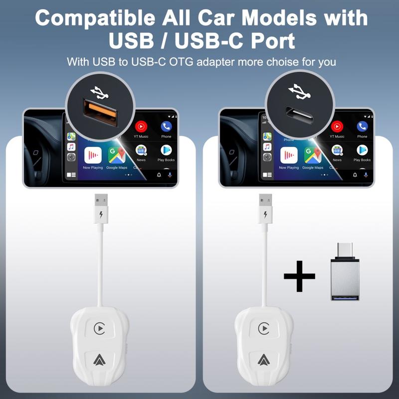 THT-020-9 Autodraadloze Carplay Android Auto Dongle Draadgebonden naar draadloze adapter - Wit
