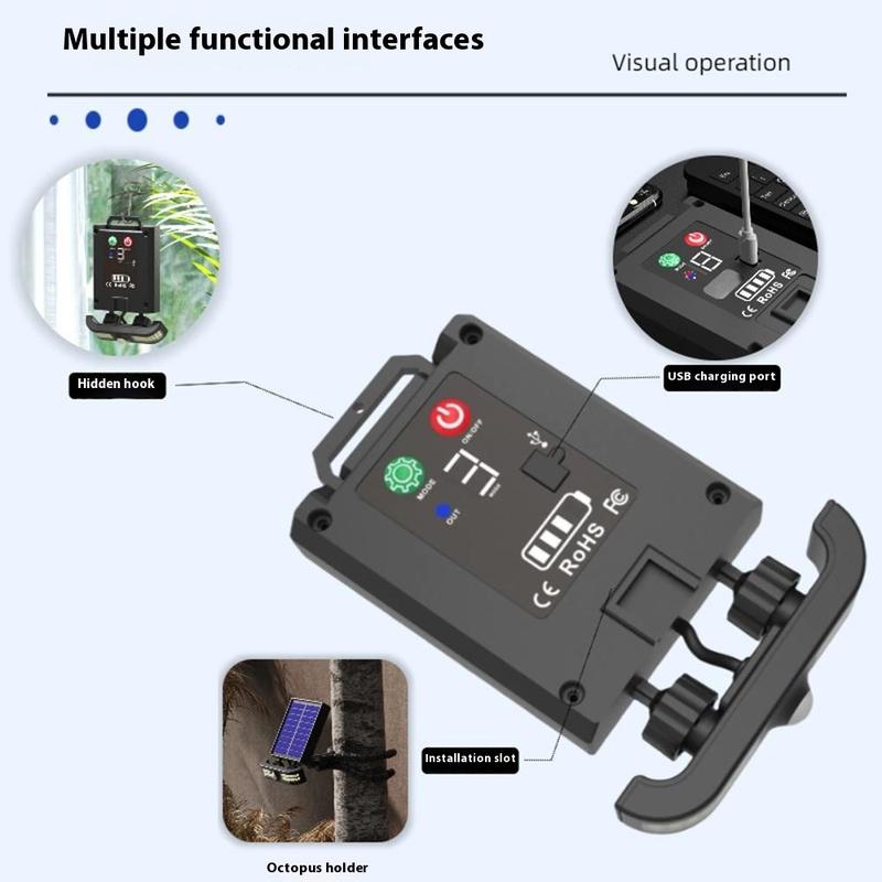Aangedreven door een 3,7V/1200mAh lithiumbatterij, biedt de lamp langdurige verlichtingsprestaties. Opladen op zonne-energie duurt 4-5 uur, terwijl opladen via USB een snellere back-upoptie biedt van ongeveer 3 uur.