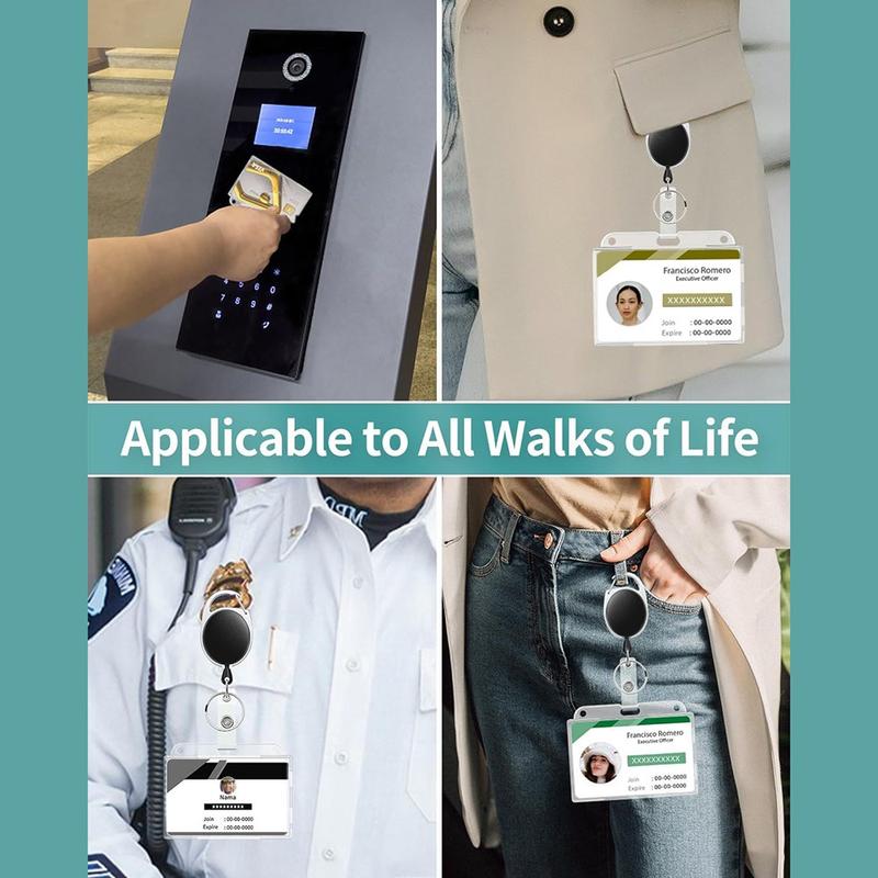 Klem, veeg en ga verder met je dag. Deze intrekbare badgehouder combineert een krasbestendige polycarbonaat badgehouder met een gladde, zinklegering haspel, waardoor twee badges veilig, zichtbaar en klaar voor elk controlepunt zijn. Het 60 cm lange trekkoord veert geluidloos terug en de geïntegreerde karabijnhaak klik je in een paar seconden vast aan riemlussen of tasriemen.
