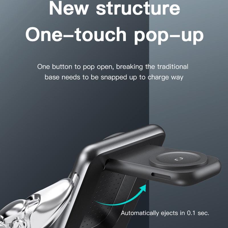 Totu CW-4-W 3-in-1 draadloos oplaadstation - magnetische opvouwbare oplaadstandaard voor telefoon, horloge en oordopjes - 15W snel opladen