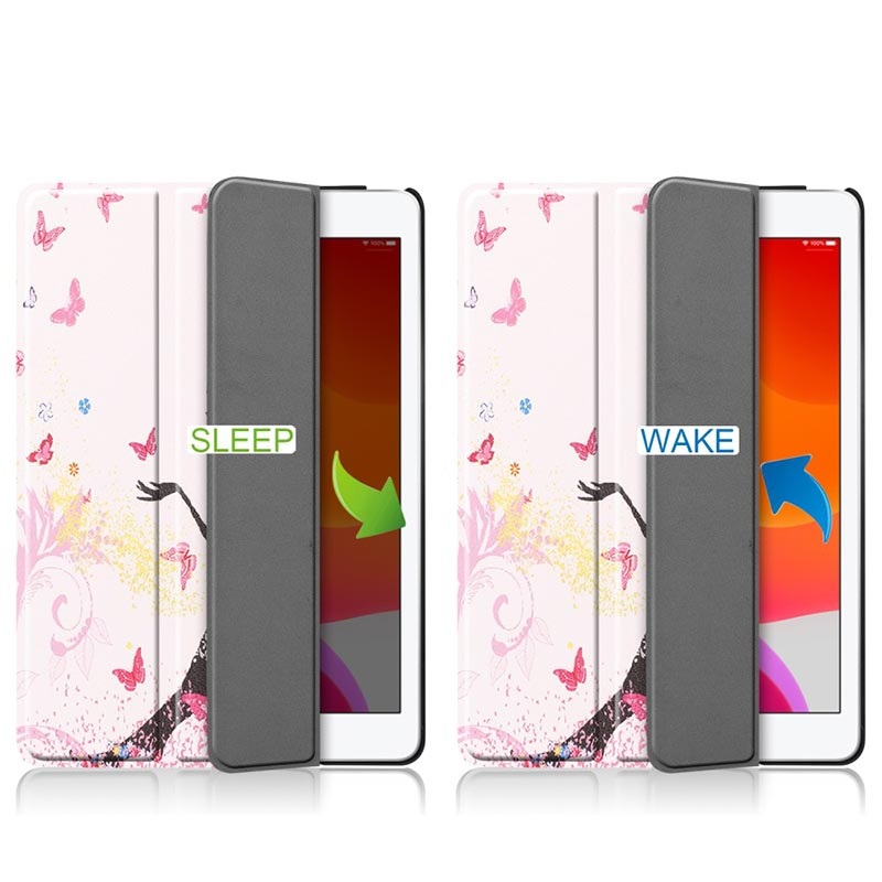 Of je nu een video bekijkt of tekent met een stylus op je iPad 10.2, deze folio-case houdt hem in een ideale hoek, voor een comfortabelere en productievere ervaring. Ondertussen schakelt de slimme wek- / slaapfunctie het display automatisch in wanneer u de voorklep opent.
