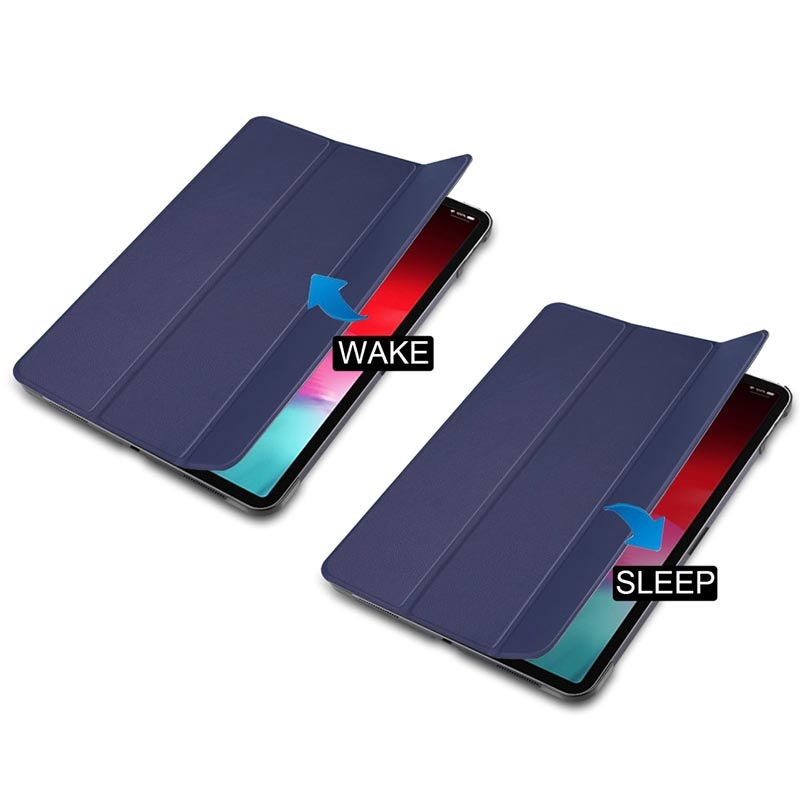 Een zeer praktische case voor iPad Pro 11 omdat deze een opvouwbare frontcover heeft waarmee je je tablet in een perfecte positie kunt plaatsen en een slimme functie die het scherm van je iPad Pro 11 activeert wanneer je de case opent. Plaats gewoon uw tablet op de juiste positie en surf op het web of bekijk video's gemakkelijker dan voorheen.