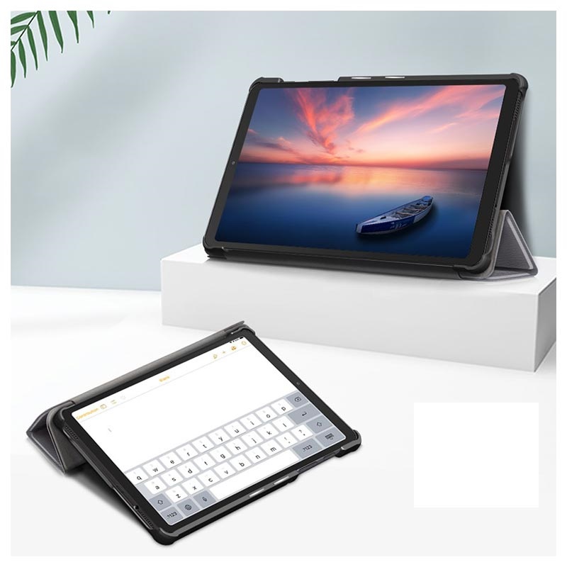 Een mooie en handige folio-hoes voor de Samsung Galaxy Tab A7 Lite heeft unieke kenmerken, zoals het drievoudige standaardontwerp dat een gunstige hoek biedt bij het bekijken van video's, lezen, surfen op het web en soortgelijke hobby's.