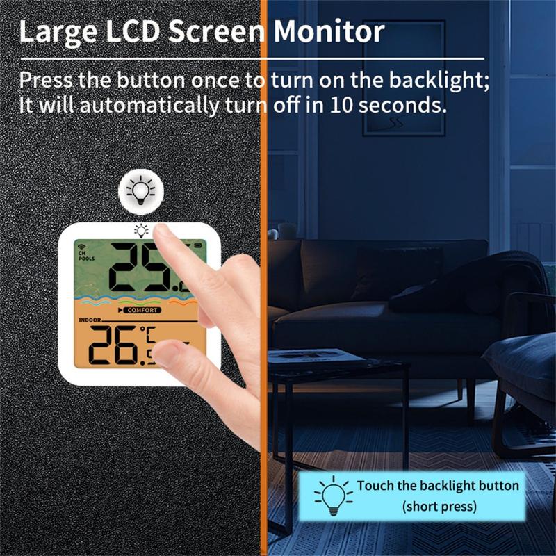 Houd de temperatuur van uw zwembad of spa eenvoudiger in de gaten met de draadloze zwembadthermometer TS-PL07. Deze drijvende digitale thermometer is ontworpen voor gemakkelijk gebruik zowel binnen als buiten en bestaat uit een waterdichte zender en een aparte ontvanger voor binnenshuis, zodat u de watertemperatuur kunt controleren zonder naar buiten te hoeven gaan.
