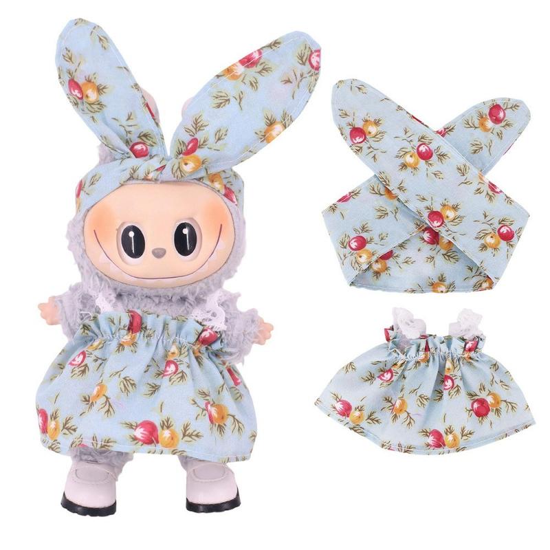 Tuin-Party Jurk & Hoofdband Set voor 17cm Labubu Minifiguur - Op maat gesneden Party Outfit, Zachte Doek, Makkelijk Jurk Ontwerp