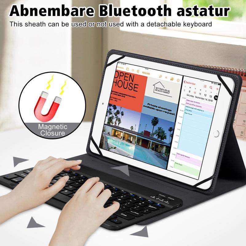 TY3316 Universele tablethoes met Bluetooth toetsenbord - 9-11", polyurethaan standhoes met instelbare kijkhoek, elastische riemen, VS-indeling