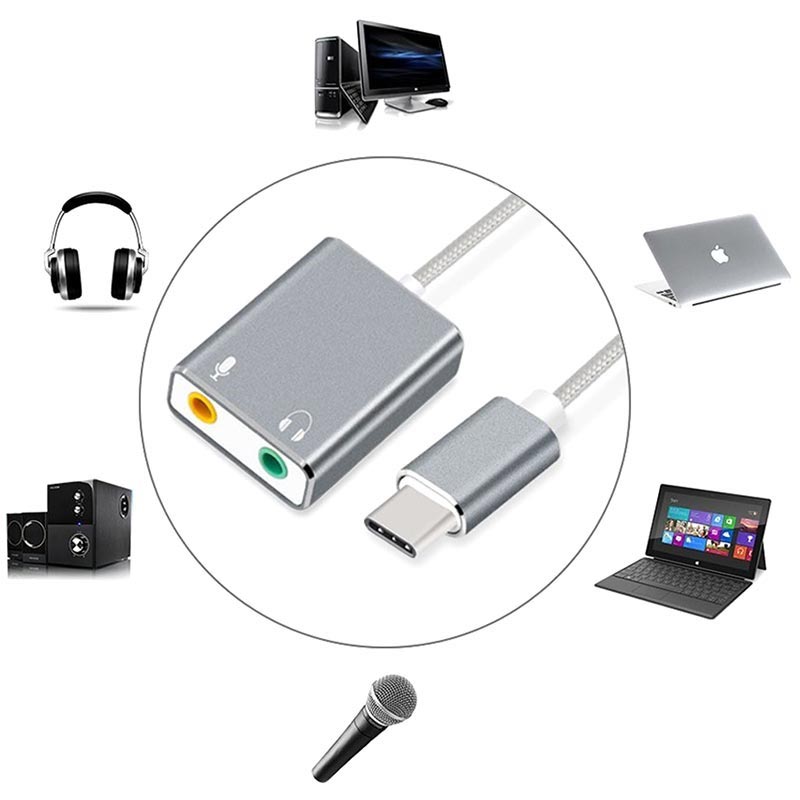 - Praktische en handige Type-C mannelijke naar 3,5 mm audio-adapter met hoofdtelefoon en vrouwelijke microfoonpoorten