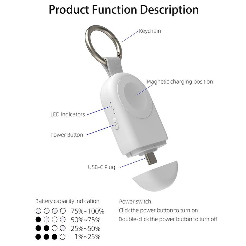• U16 Voor Apple Watch AirPods Smartwatch Oplader Mini Magnetisch Draadloos Oplaad Pad met Type-C Stekker - Wit
