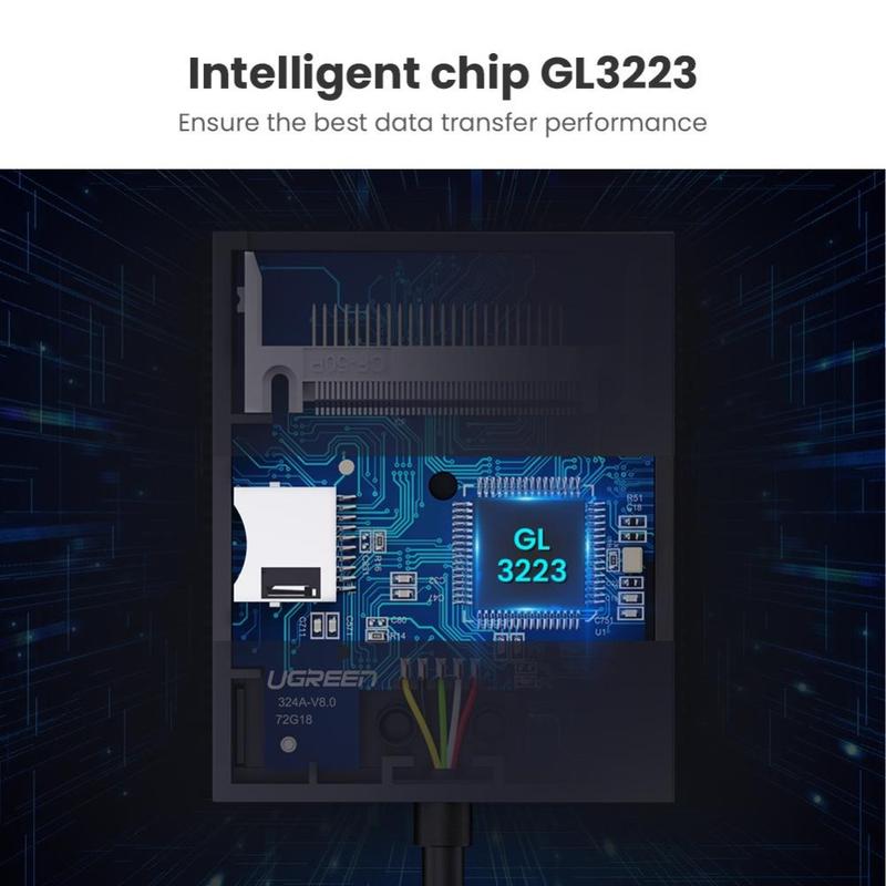 Deze UGREEN-kaartlezer is een slimme keuze als u verschillende soorten kaarten gebruikt en één betrouwbare adapter wilt. Hij ondersteunt vier formaten in één apparaat, draagt gegevens snel over via USB 3.0 en kan meerdere kaarten tegelijk verwerken. De afgeschermde kabel verbetert de duurzaamheid en helpt de poort van uw computer te beschermen, waardoor hij praktisch is voor frequent dagelijks gebruik.