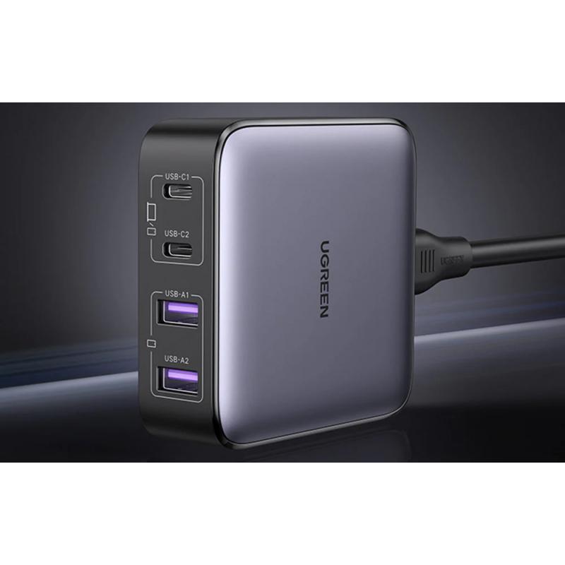 Ugreen Nexode 65W 4-poorts desktop-oplader - Dual USB-C PD & Dual USB-A QC snel opladen Hub, Compact GaN-ontwerp