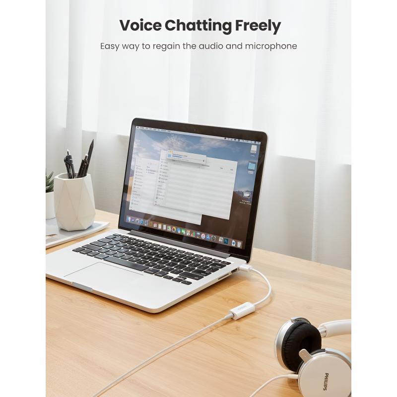 De UGREEN US206 USB-audioadapter voegt een 3.5mm TRRS-headsetverbinding toe aan apparaten die geen speciale audio-aansluiting hebben of een beschadigde poort hebben. Hij ondersteunt zowel audio-uitvoer als microfooningang via een enkele 3.5mm-connector, waardoor hij ideaal is voor headsets, online vergaderingen, gaming en dagelijkse communicatie. Met eenvoudige plug-and-play-bediening en brede systeemcompatibiliteit biedt hij een betrouwbare en handige audio-oplossing zonder extra stuurprogramma's.