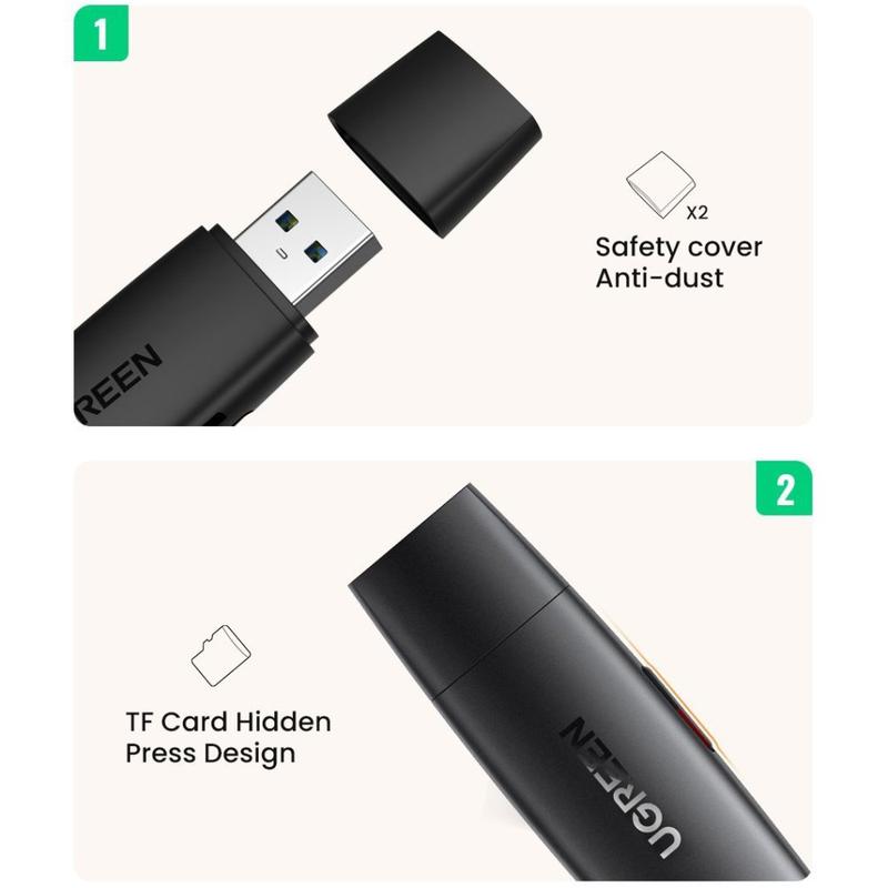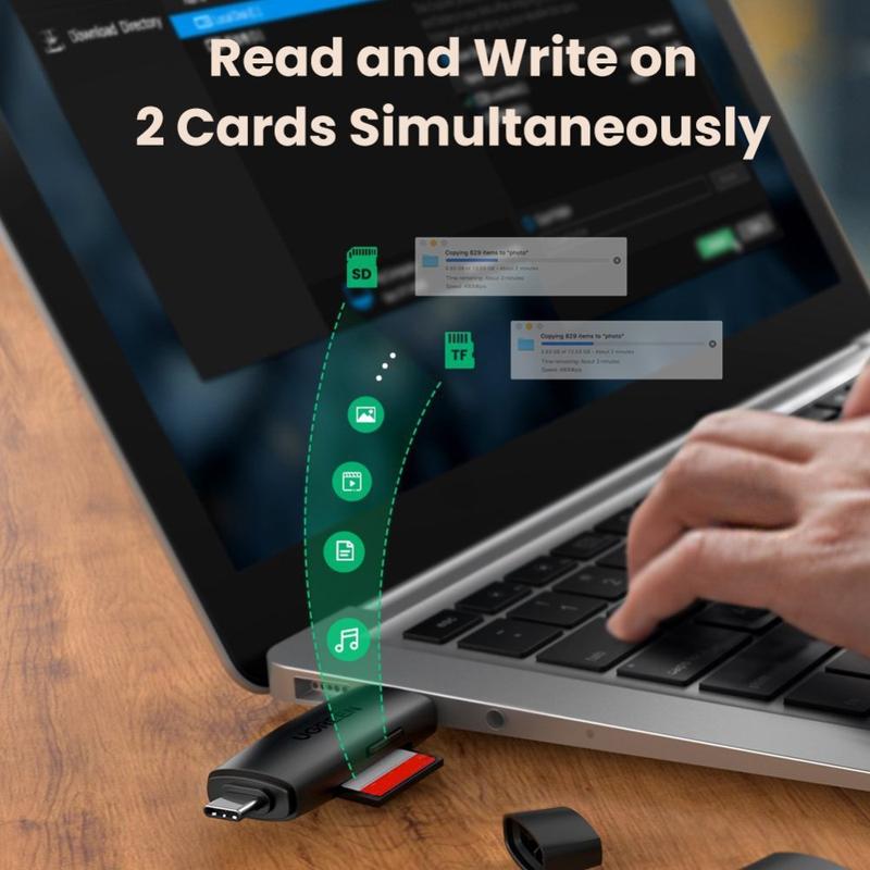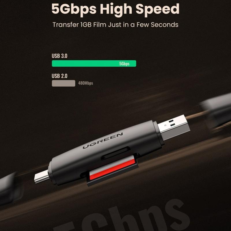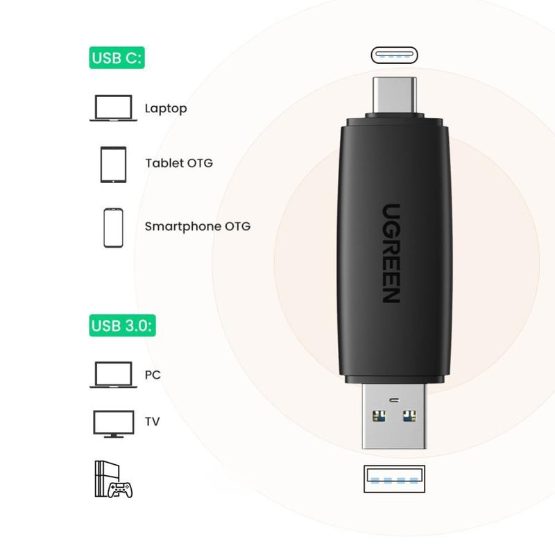 Ugreen USB-C en USB-A SD microSD-kaartlezer 5 Gbps - 2-in-1 OTG-adapter met dubbele sleuven