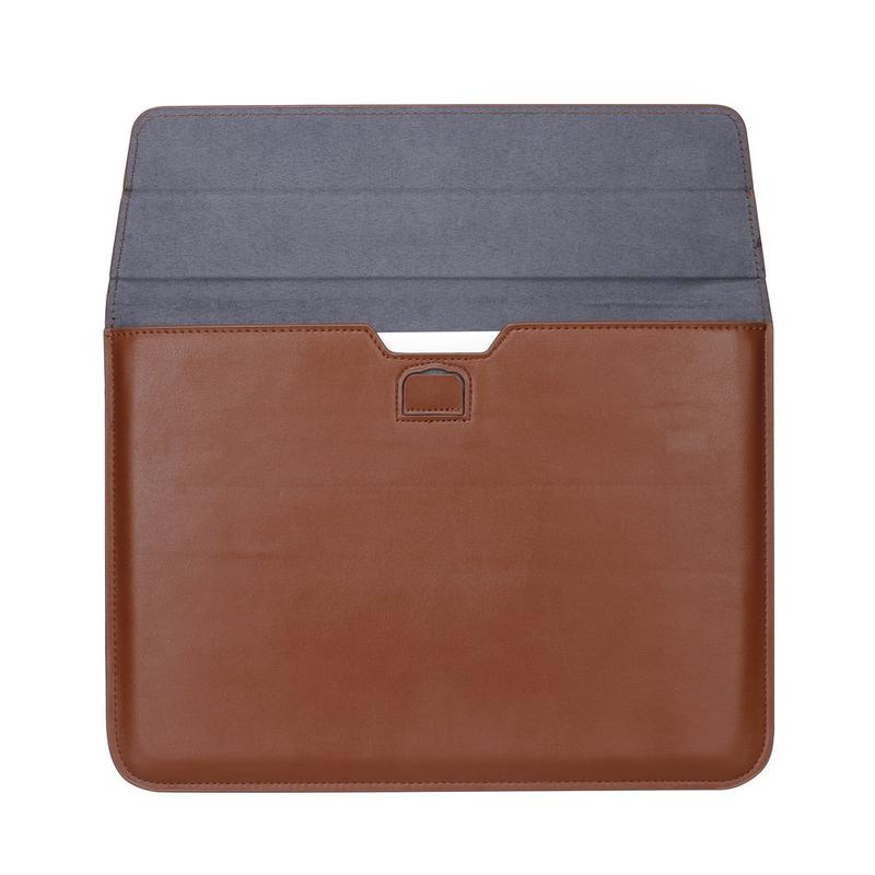 Bescherm uw laptop en zorg voor een nette, professionele uitstraling met deze ultradunne hoes in envelopstijl voor MacBook Pro 15.4 inch. De hoes is gemaakt van duurzaam polyurethaan en is ontworpen om dagelijkse slijtage te weerstaan, terwijl hij slank en lichtgewicht blijft voor gemakkelijk transport. De ruime binnenkant biedt plaats aan uw laptop en kan ook essentiële spullen zoals een A4-tijdschrift, notitieboekje, tablet en telefoon bevatten, waardoor het een praktische keuze is voor werk, vergaderingen en reizen. Het opvouwbare flapontwerp kan ook dienen als eenvoudige standaard voor extra gemak.