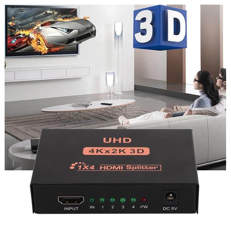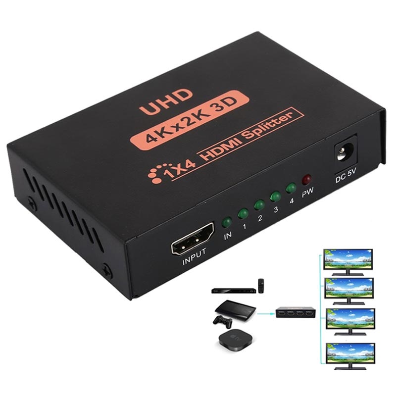 - Een praktische HDMI UHD-splitter met vier uitgangen