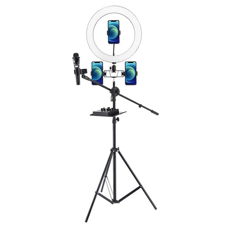 UN-700 10'' LED Ring Light met statief Sound Card Tray en 3 telefoonhouders voor selfie YouTube Video Fotografie Make-up