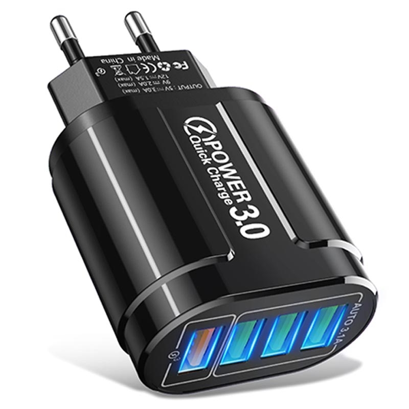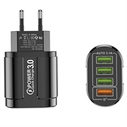 Universele 4-poorts snelladende USB-lichtnetadapter - QC3.0, 48W, EU-stekker
