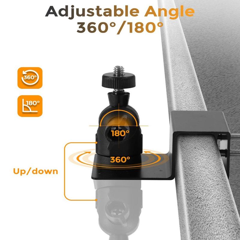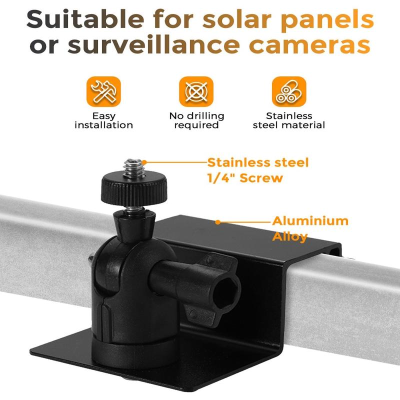 Universele montage voor beveiligingscamera's op railing en dakgoot - 360° verstelbare aluminium pan-schuine standbeugel met 1/4" schroef