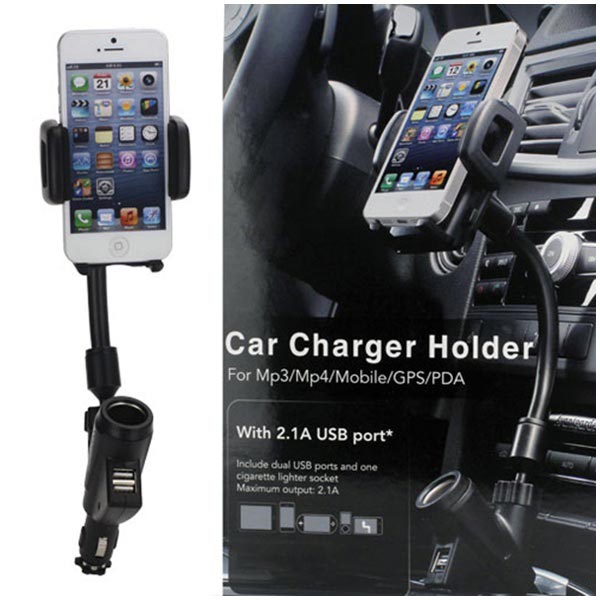 - Deze autohouder en dubbele oplader kunnen worden gebruikt met de meeste smartphones (iPhone, Samsung, Nokia, HTC, Sony Ericsson, Motorola, Blackberry, enz.), via een sigarettenaansteker en dubbele USB-oplader.