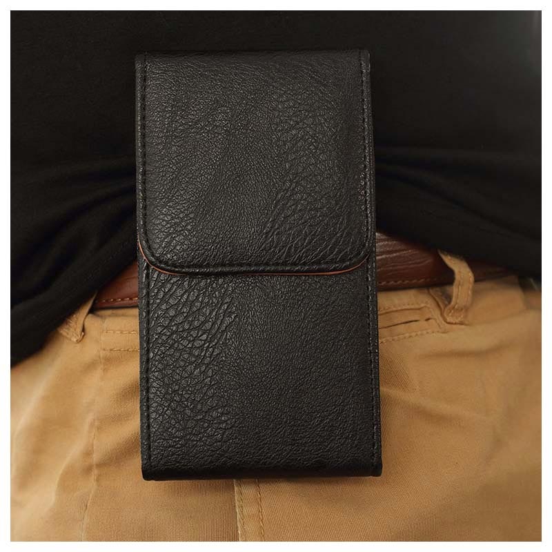 Universele lederen tas met verticale riemclip - Binnenmaat: ongeveer 147 mm x 78 mm x 13 mm