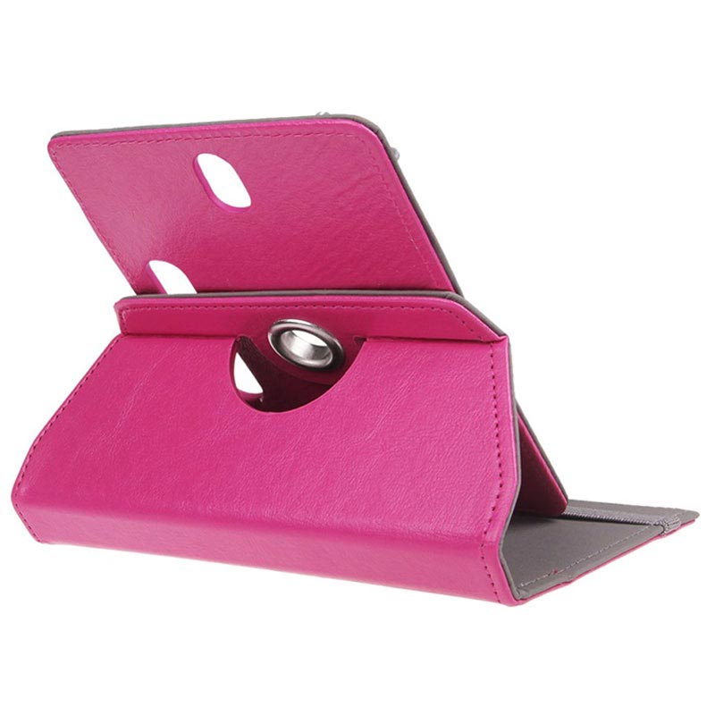 Elegant en beschermend, de universele roterende folio-hoes voor 7" tablets biedt alle benodigde dagelijkse bescherming. Deze veelzijdige hoes kan 360 graden worden gedraaid, zodat u de meest comfortabele hoek kunt instellen voor typen, media kijken of internetten. Vier verstelbare plastic handgrepen houd uw tablet stevig op zijn plaats, terwijl een elastische band de voorklep gesloten houdt wanneer deze niet in gebruik is.