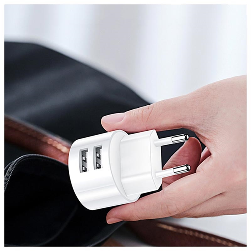 Usams CC081 T20 Dual-Port snelle reislader met Lightning-kabel - EU-stekker