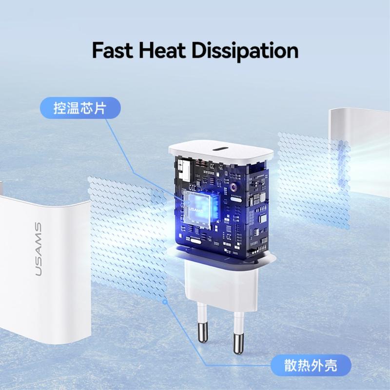 Upgrade naar de USAMS CC226 20W PD snellader - compact, krachtig en ontworpen voor veilig, snel opladen!