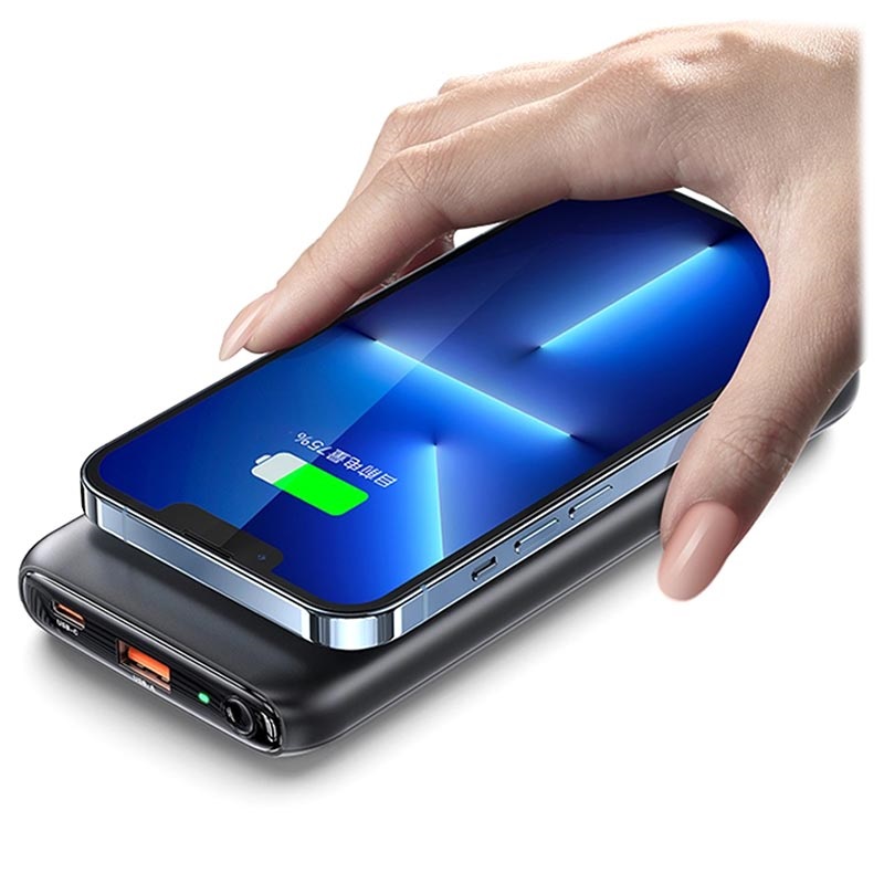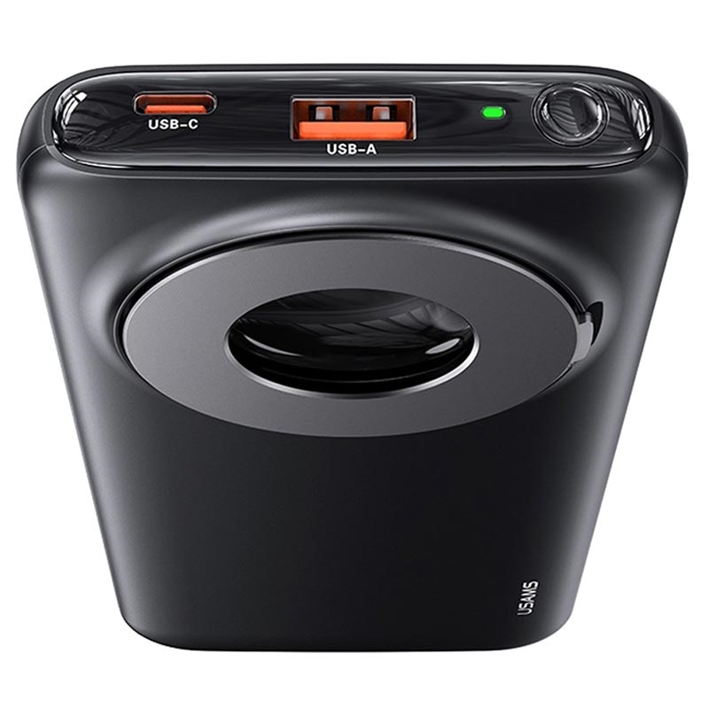 Laad tot drie apparaten tegelijk op met een maximaal uitgangsvermogen van 22,5 W via standaard USB, USB-C-poort en Qi-oplader. Bewaar AirTag op het achterste binnenringcompartiment, gebruik de ring als standaard en controleer het resterende vermogen op het digitale display. Usams US-CD171PB62 magnetische draadloze powerbank is compatibel met MagSafe en ondersteunt snellaadprotocollen zoals Power Delivery 20W, Quick Charge 3.0, enz.