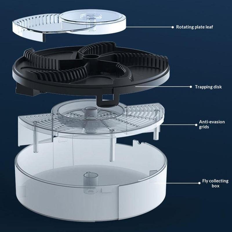 Maak binnenruimtes aangenamer en hygiënischer met deze via USB oplaadbare, automatisch roterende vliegenvanger. Deze vliegenvanger voor huishoudelijk gebruik is ontworpen voor stil en praktisch dagelijks gebruik en maakt gebruik van een fysieke vangmethode met roterende zuigtechnologie om vliegende insecten te vangen zonder dat er sterke geuren of ingewikkelde installaties aan te pas komen. Het is een handige oplossing voor keukens, eetruimtes, cafés, ruimtes waar voedsel wordt bereid en andere binnenomgevingen waar vliegen hinderlijk kunnen zijn.