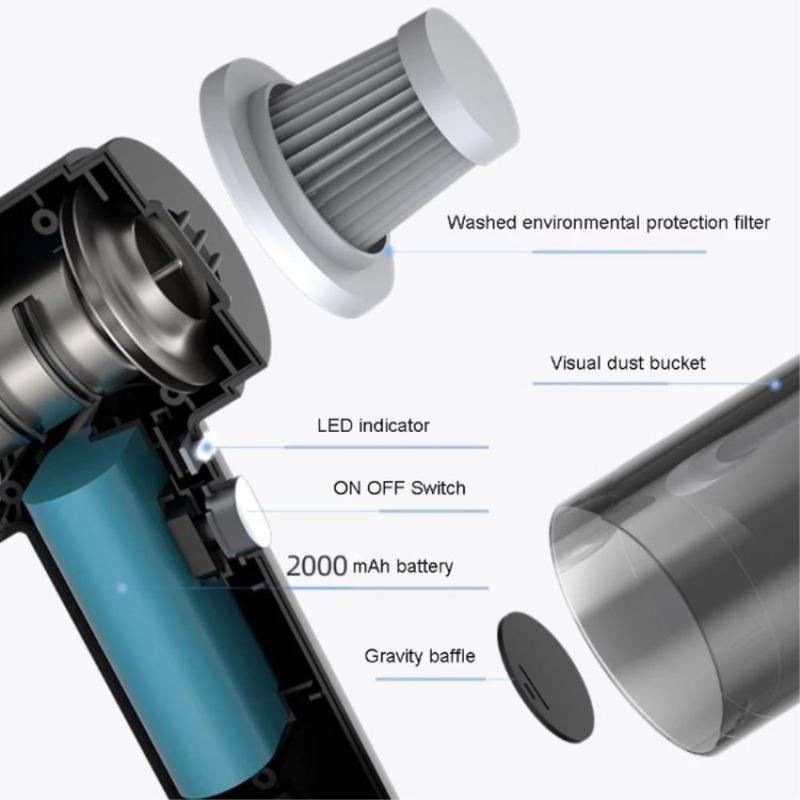 Deze snoerloze handstofzuiger biedt een krachtige zuigkracht in een compact, draagbaar ontwerp, waardoor hij ideaal is voor zowel de dagelijkse schoonmaak als de dieptereiniging. Met veelzijdige hulpstukken en USB-opladen is hij perfect voor autobezitters, huisdiereigenaren en drukke huishoudens.