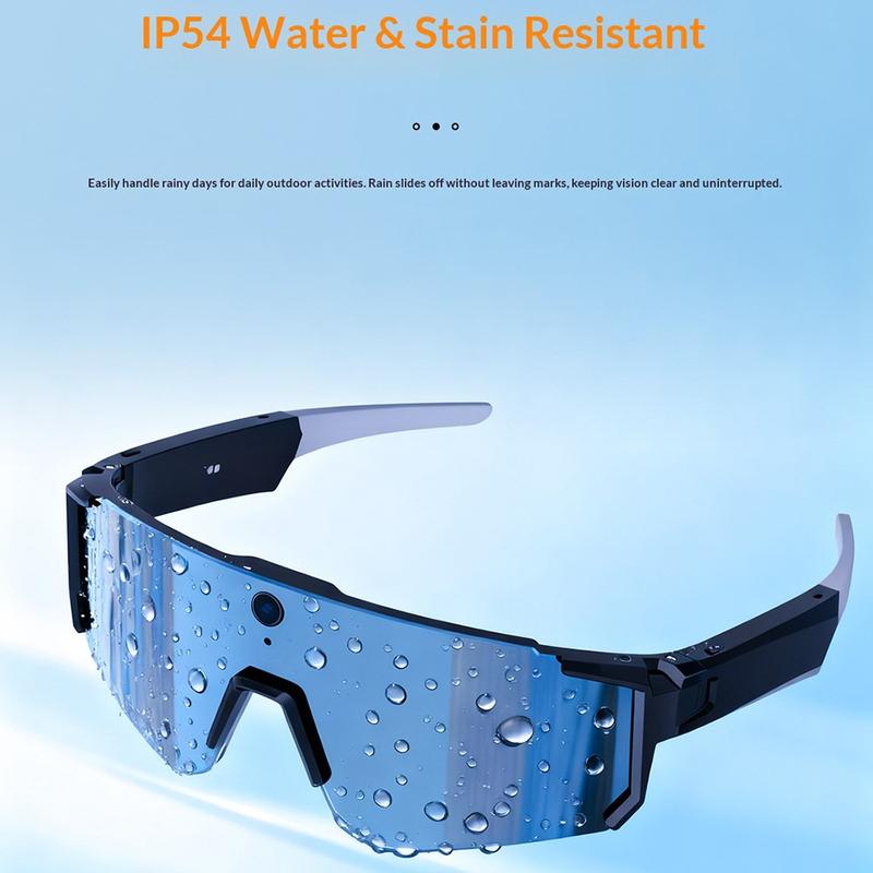De bril is ontworpen voor gebruik buitenshuis en is IP54 water- en stofbestendig, waardoor hij geschikt is voor fietsen, reizen en dagelijks gebruik in wisselende weersomstandigheden.