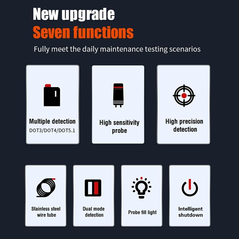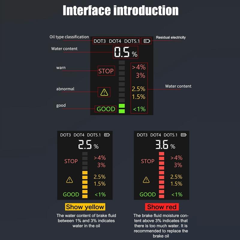 - Snelle, nauwkeurige controle van het watergehalte voor DOT3, DOT4 en DOT5.1 remvloeistoffen