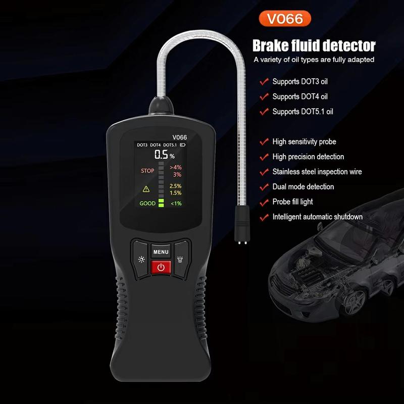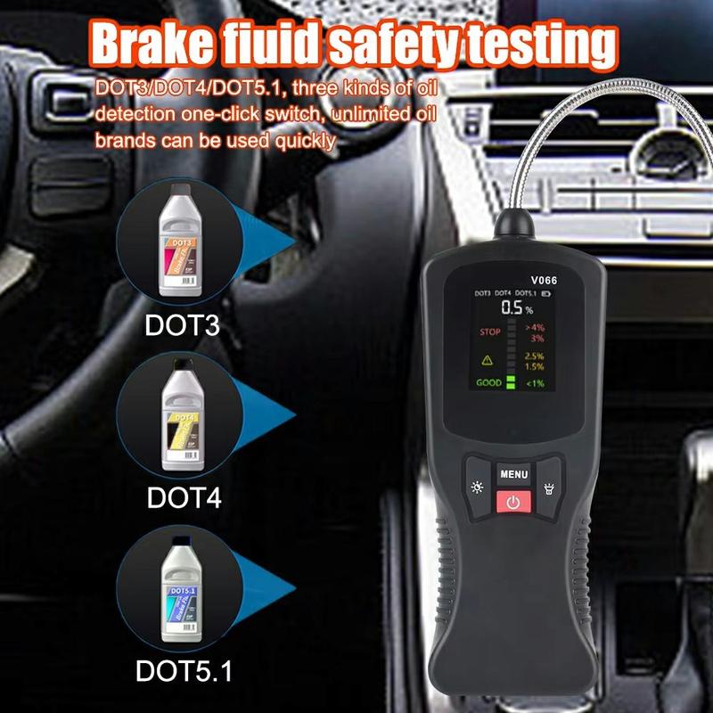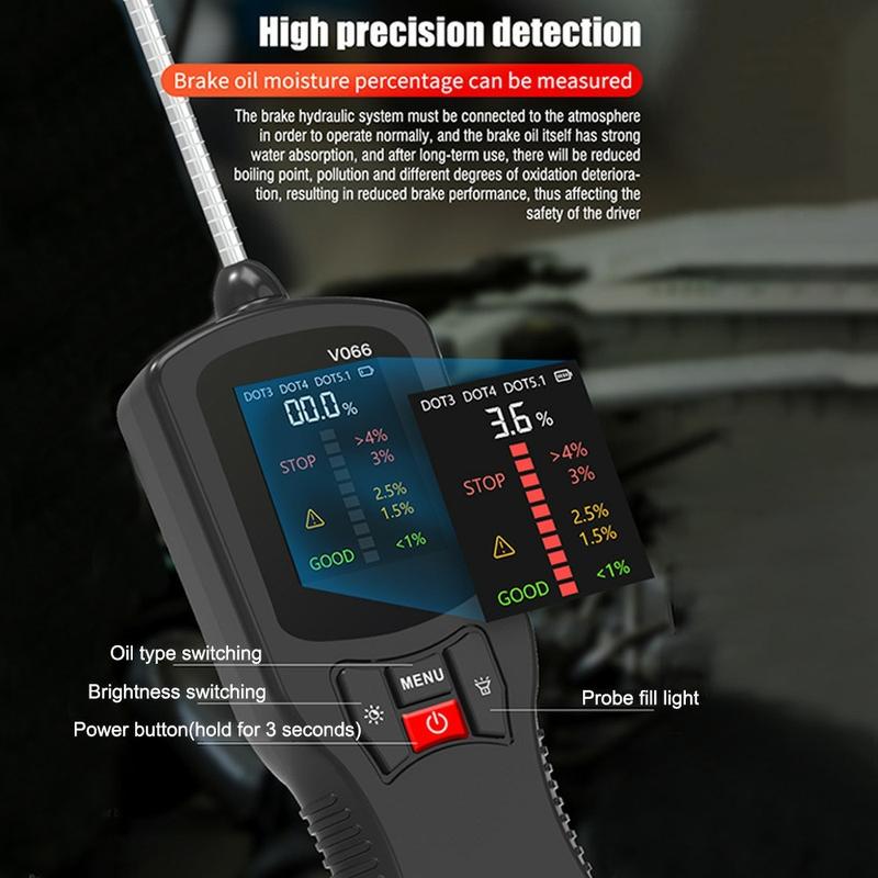 • V066 Remvloeistoftester voor autodiagnostiek - DOT3 DOT4 DOT5.1 Watermeter met kleurendisplay en zeer gevoelige sonde