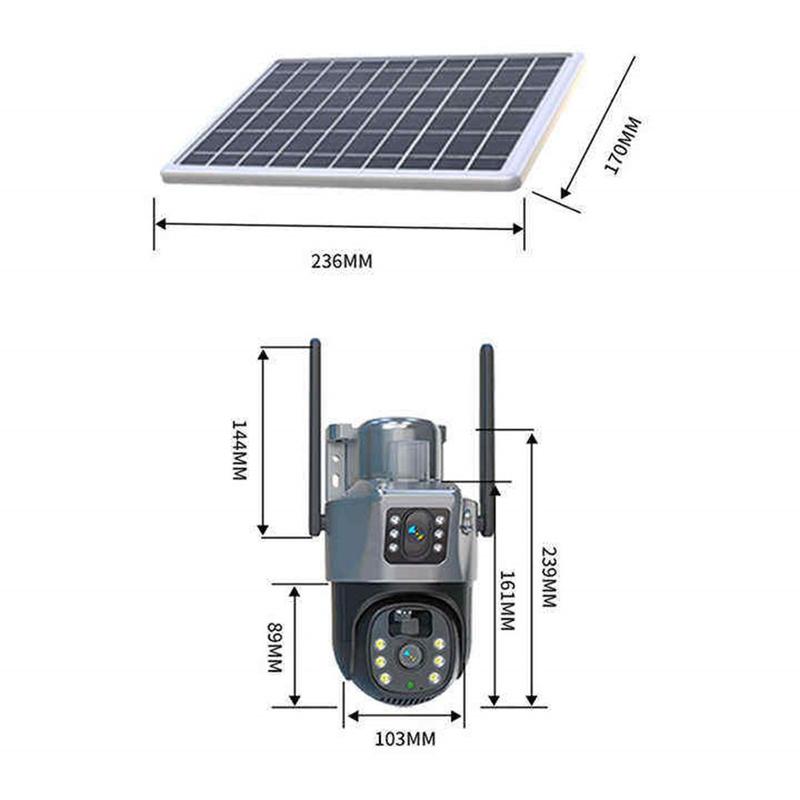 V380 4G-beveiligingscamera voor buiten op zonne-energie - 4 MP PTZ-camera met dubbele lens, nachtzicht in kleur en bewegingsdetectie