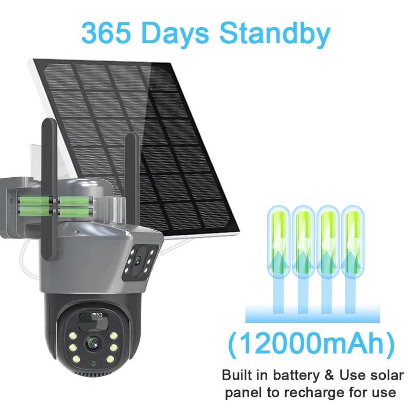 De V380 4G-beveiligingscamera op zonne-energie is ontworpen voor gebruikers die op zoek zijn naar flexibelere buitenbewaking zonder afhankelijk te zijn van een vaste stroombron. Door de combinatie van opladen via zonne-energie, een ingebouwde oplaadbare batterij, dekking met twee lenzen en pan-tilt-bediening op afstand biedt deze camera een praktische bewakingsoplossing voor tuinen, opritten, ingangen, boerderijen, bouwplaatsen, vakantiehuizen en andere buitenruimtes. Dankzij de 4G-connectiviteit is deze camera bijzonder handig voor locaties waar wifi zwak, onstabiel of niet beschikbaar is.