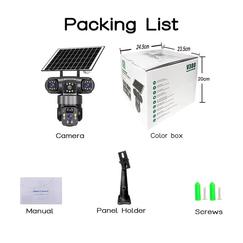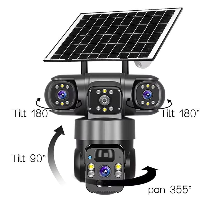 V380 Pro Solar 3-lens outdoor PTZ WiFi-beveiligingscamera 2K - Menselijke tracking, tweeweg audio, IP67, H.265, TF/cloudopslag