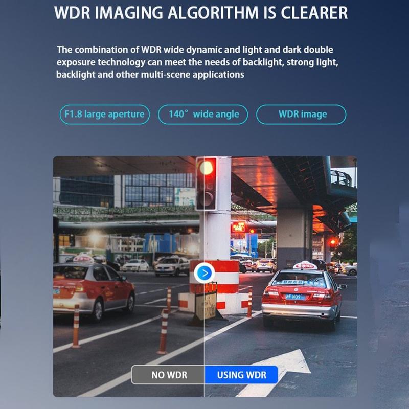 - Een lens van 170 graden op het dashboard registreert ongeveer 3,2 meter wegbreedte op 10 meter afstand, waardoor incidenten op aangrenzende rijstroken die door smalle lenzen worden gemist, worden geregistreerd.