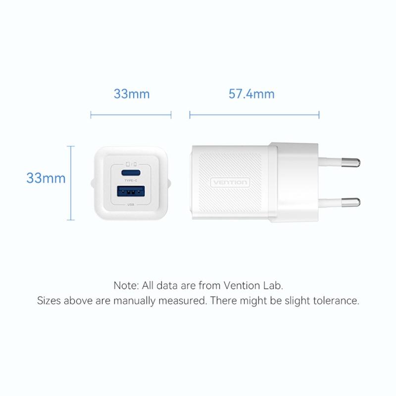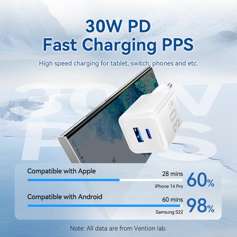 • Vention FEQ 30W GaN snelle wandoplader - Dual USB-C en USB-A