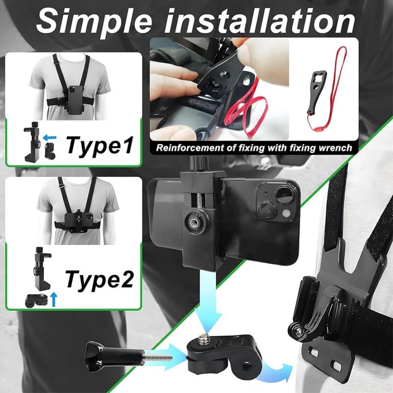 Met deze borstband kunt u een actiecamera of smartphone stevig aan de voorkant van uw borst bevestigen, waardoor u een meeslepende POV-hoek krijgt voor het vastleggen van landschappen, sporten en outdooravonturen.