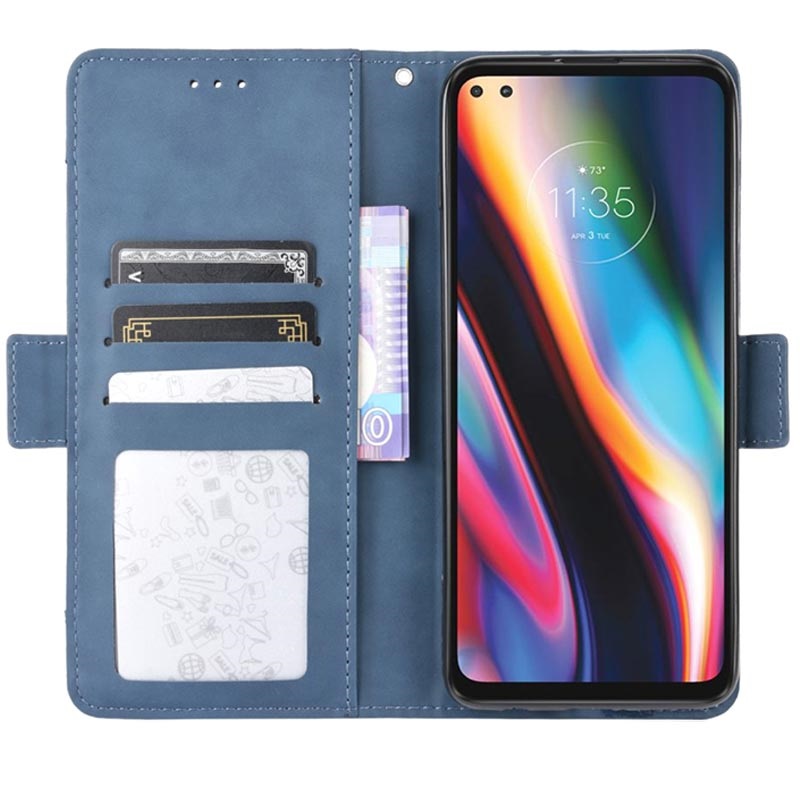 Vintage Series Motorola Moto G 5G Plus Portemonnee Hoesje met Kaarthouder - Blauw