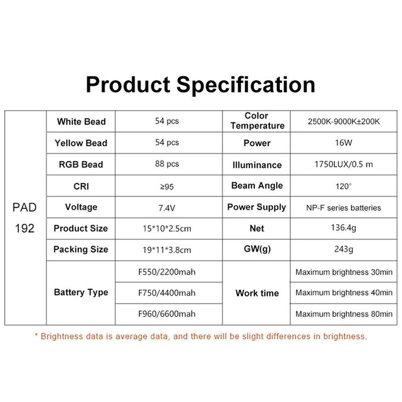 VLOGLITE PAD192RGB LED Camera Opvullicht RGB Full Color Draagbare Fotografie Verlichting voor DSLR Camera Gopro