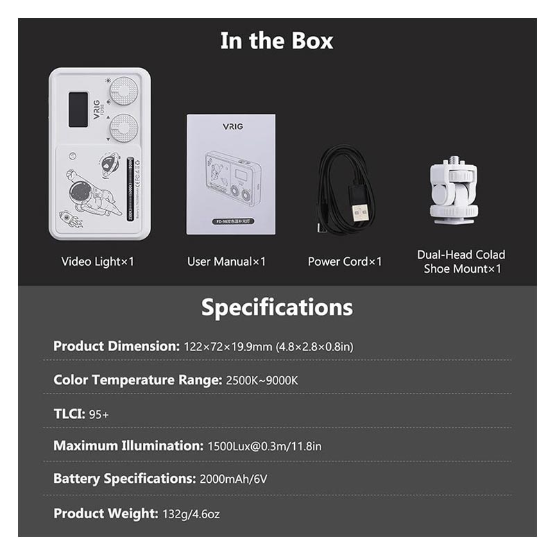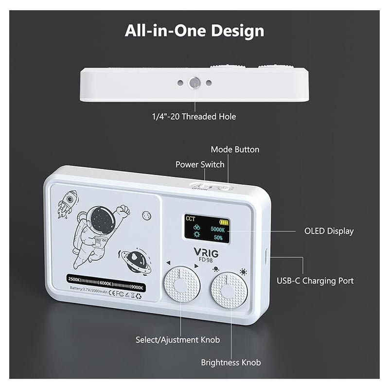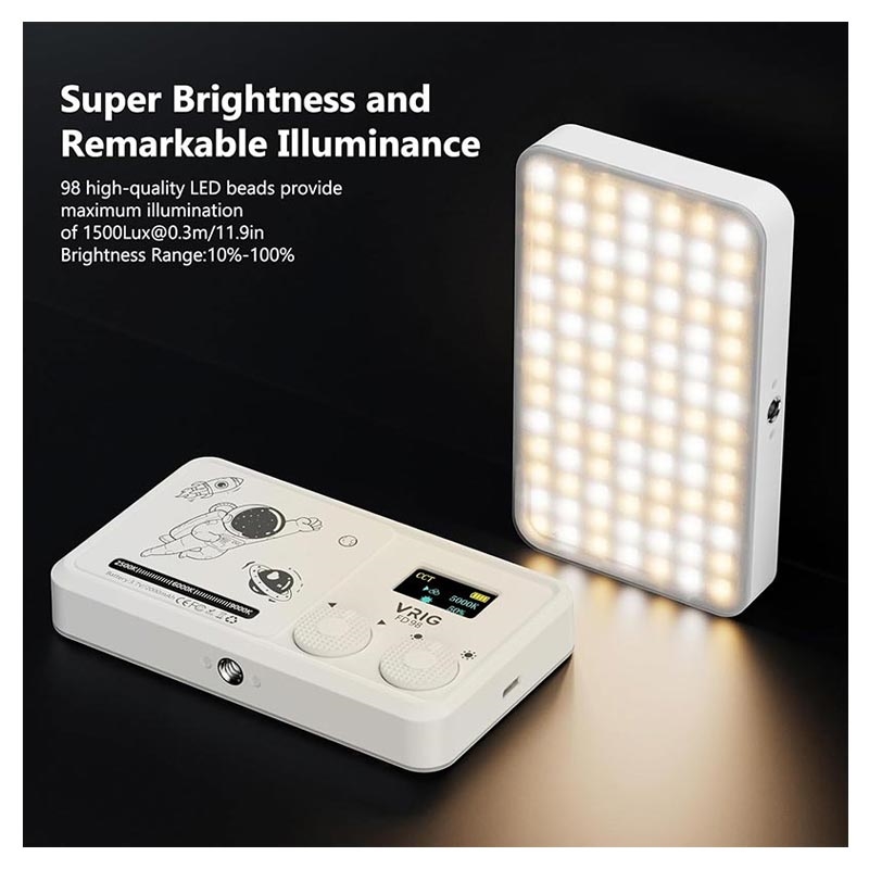 De VRIG FD-98 LED Video Light is ontworpen voor ontwerpers die studiokwaliteit verlichting nodig hebben in een draagbaar formaat. Met 98 high-CRI LED beads levert deze lamp heldere, zachte en natuurlijke verlichting voor fotografie, videografie, content creatie en livestreaming. Of je nu binnen bent of onderweg, deze invullamp op handpalmformaat zorgt voor consistente professionele resultaten.