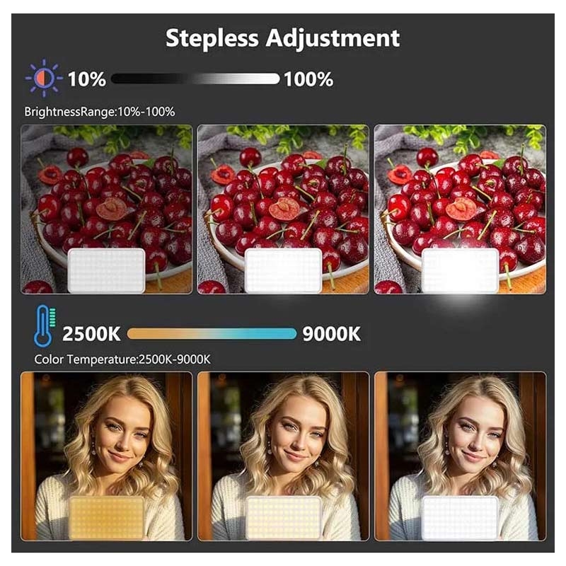Met traploze aanpassing tussen warm 2500K en koel 9000K kun je precieze verlichtingssferen creëren voor interviews, portretten, productopnamen of filmbeelden. Het brede temperatuurbereik maakt naadloze aanpassing aan elke omgeving mogelijk.