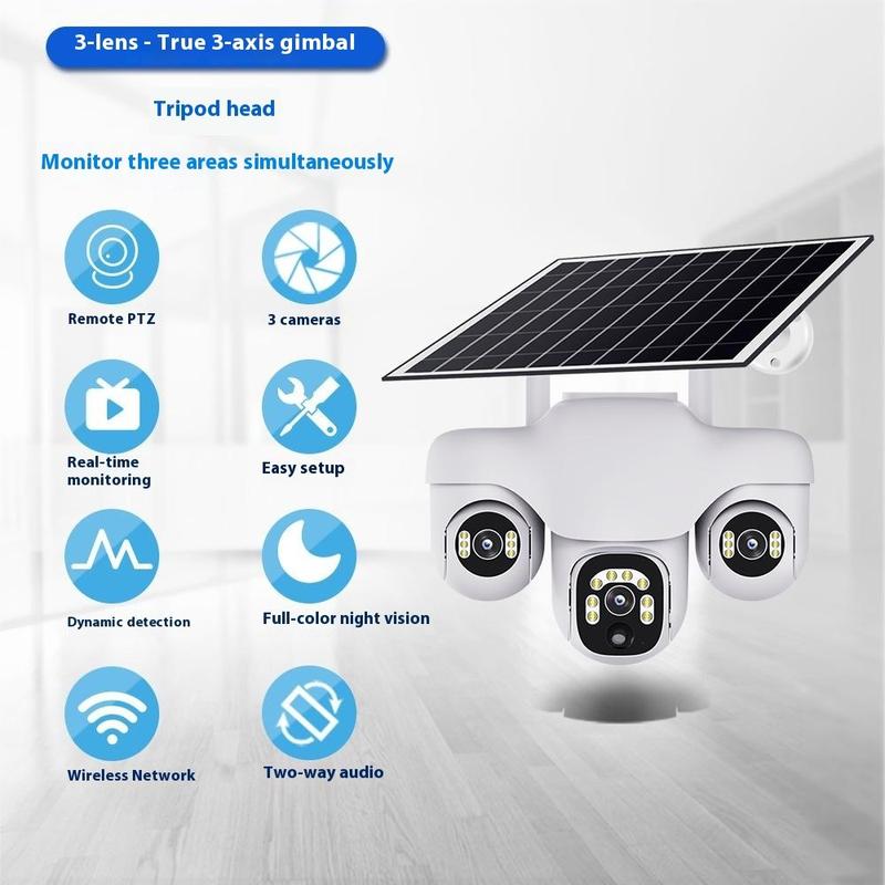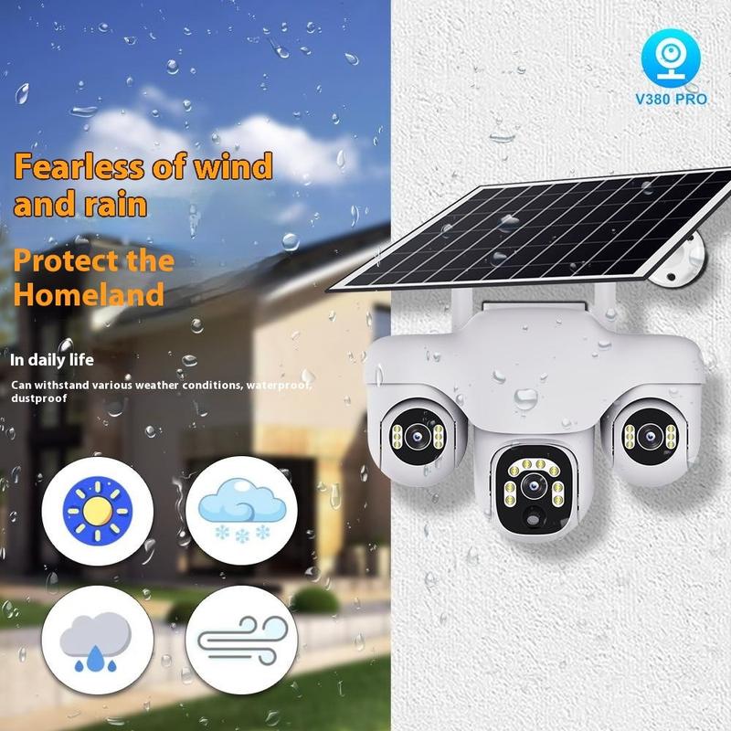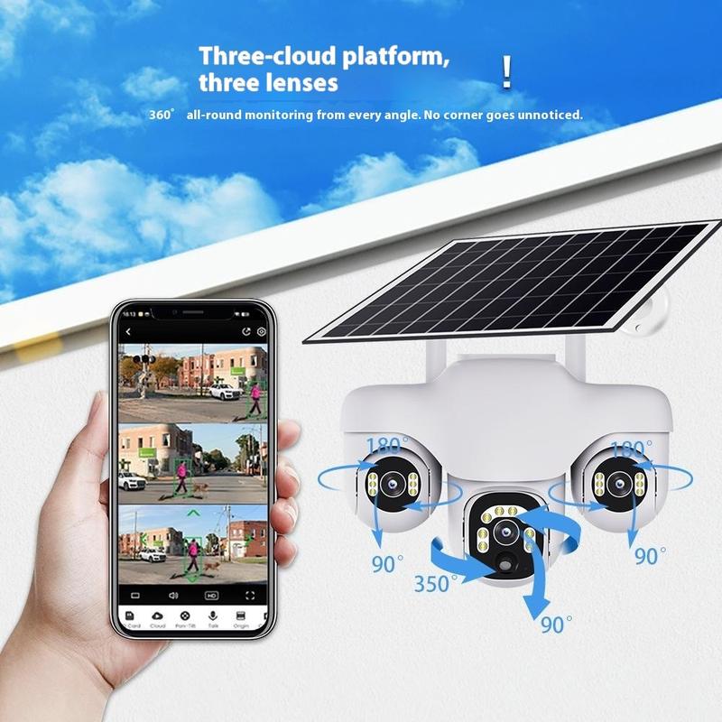 VTS31 V380 PTZ-beveiligingscamera op zonne-energie met drievoudige lens - WiFi-bewakingscamera voor buiten met bewegingsdetectie