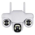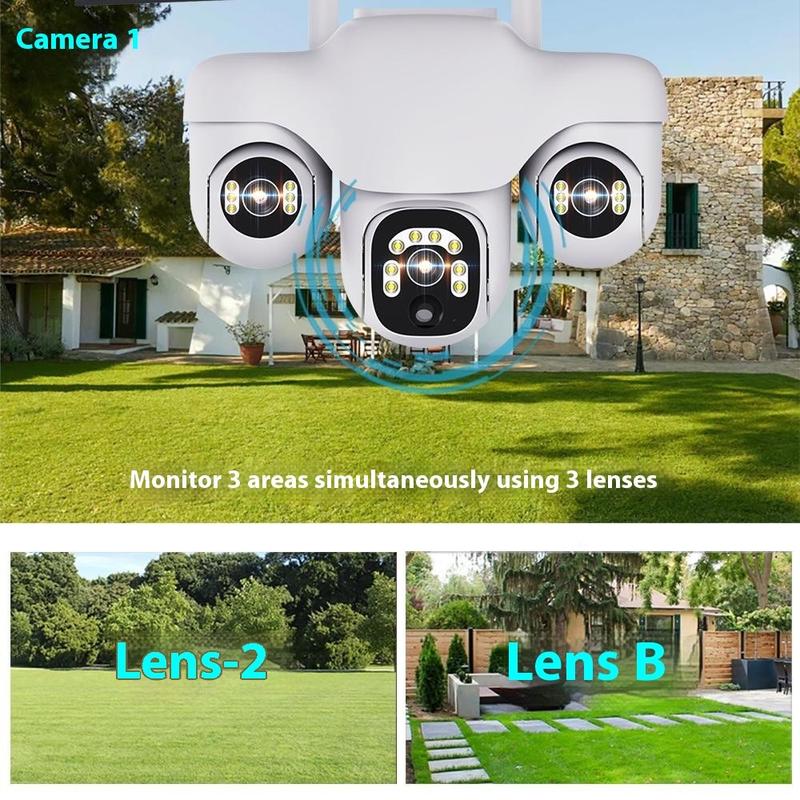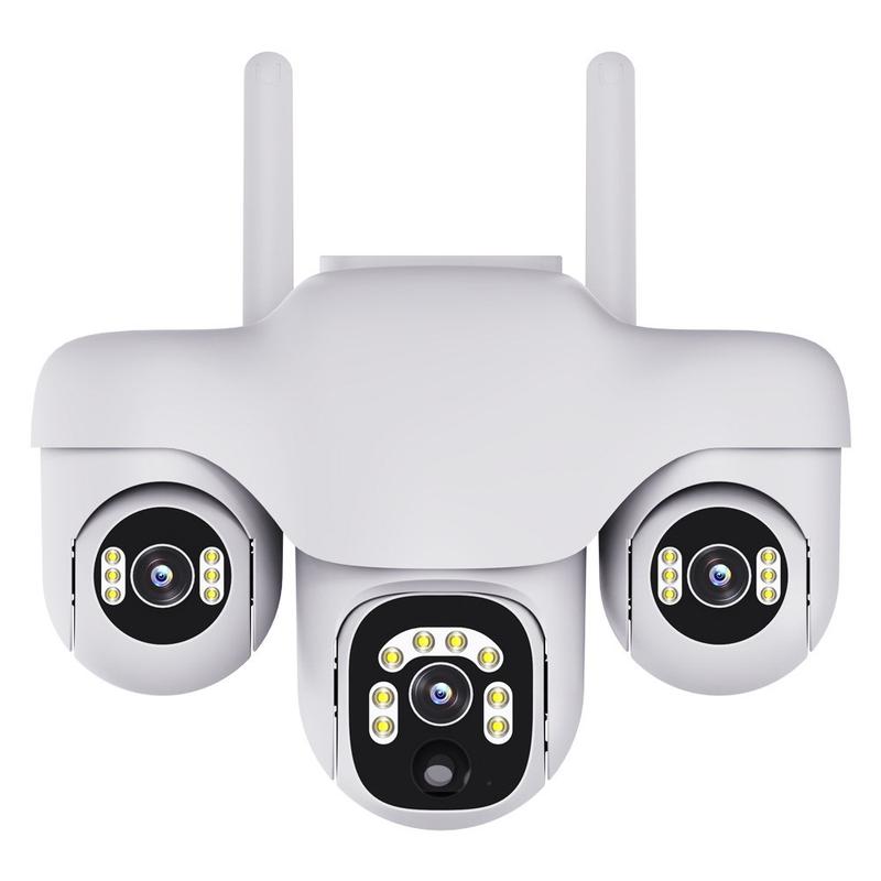 Dit model combineert panoramische dekking, slimme detectiefuncties en nachtbewaking in één ontwerp dat geschikt is voor buitengebruik. Dankzij de opstelling met drie lenzen en de draaibare PTZ-structuur kan het een veel groter gebied bewaken dan veel standaardcamera's met één lens, waardoor dode hoeken rondom uw eigendom worden verminderd.