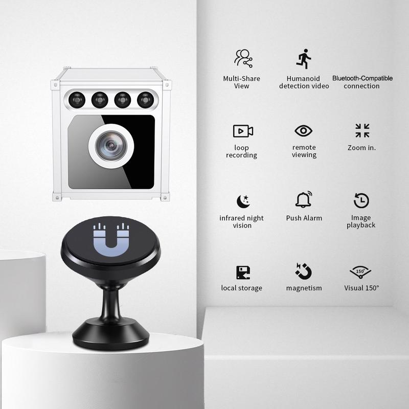 - Compacte wifi-beveiligingscamera voor binnenshuis met magnetische beugel voor flexibele plaatsing