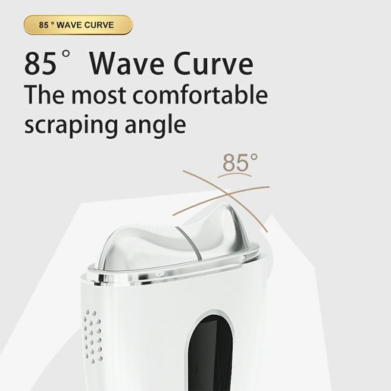 - 85° golfvormige scraper - omhelst kaaklijn, wangen en nek voor efficiënte lymfatische massage en productabsorptie.