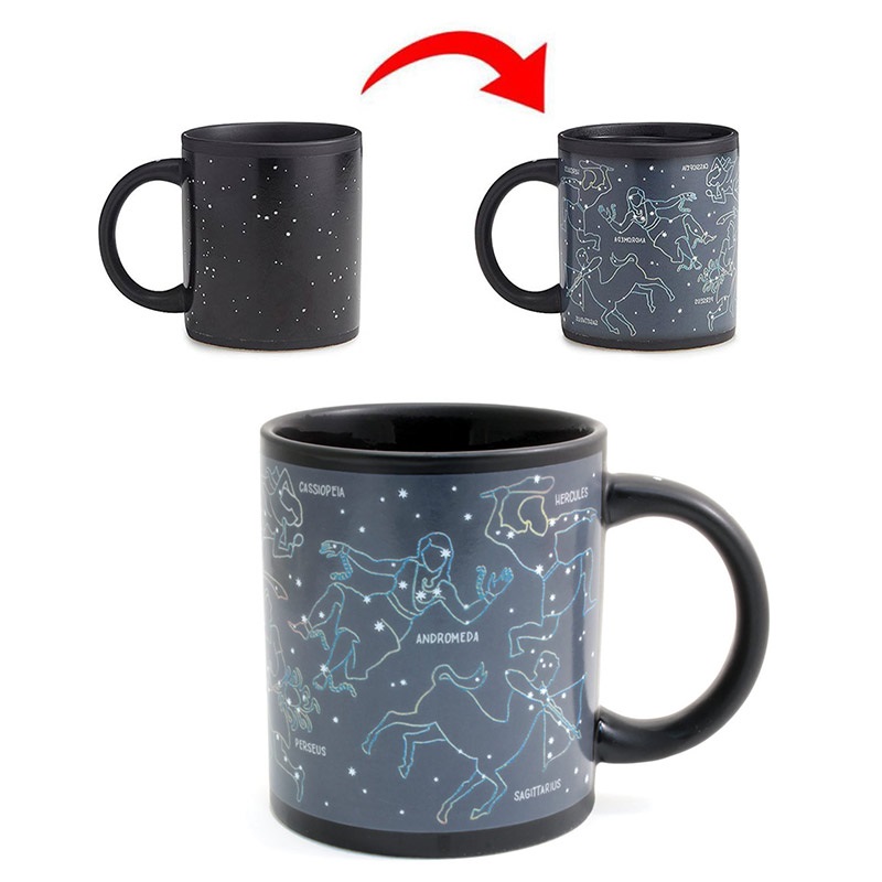 Krijg je drankje in stijl met deze warmte-geactiveerde mokken die veranderen wanneer ze worden gevuld met hete vloeistof. Je moet dol zijn op een mok die op magische wijze voor je ogen verandert wanneer je hete koffie of thee schenkt. Terwijl je koffie afkoelt, keert je mok terug naar het vorige ontwerp. Deze warmtegevoelige mok is niet alleen een geweldige manier om de dag te beginnen, maar is ook een uitstekende manier om te zien of de door jou gemaakte kop koffie al dan niet is afgekoeld.