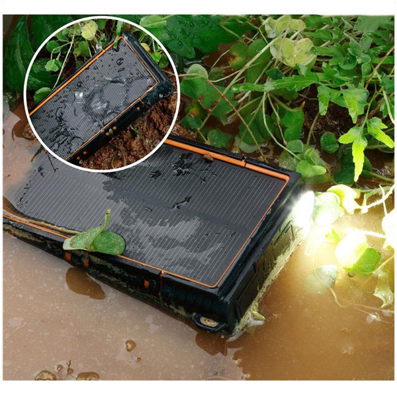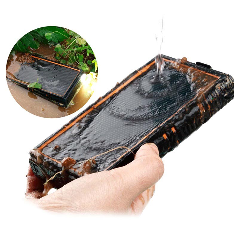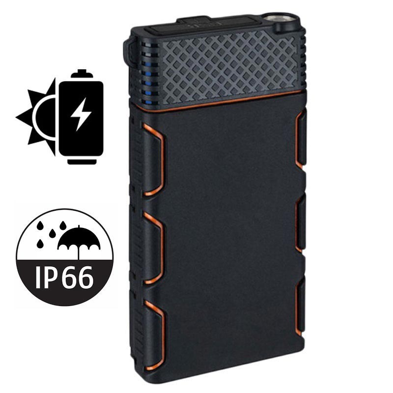 - De zonne-energiebank is gemaakt van duurzame materialen die hem schokbestendig, stofdicht en waterdicht maken