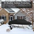 Bescherm je boot in elk seizoen met deze duurzame 210D polyester boothoes met PU-coating voor betrouwbare bescherming tegen regen, zon, stof en dagelijkse slijtage. Ontworpen voor boten van 17-19 ft (tot 600x300cm) en een praktische keuze voor opslag, aanmeren en transport. Het geïntegreerde bandensysteem met verstelbare riemen en snelsluitingen houdt de hoes veilig op zijn plaats, terwijl dubbel gestikte naden en een elastische zoom zorgen voor een goede, windbestendige pasvorm rond de romp.
